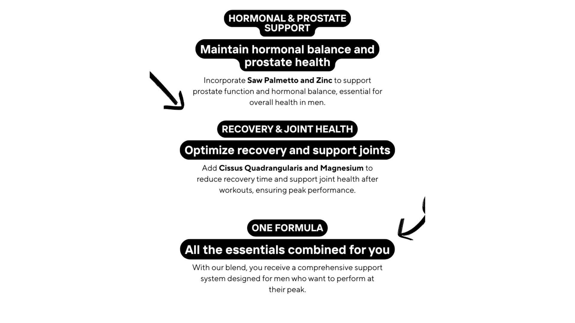 Support Men's Vitality and Wellness: Our carefully crafted dietary supplement is designed to promote men's health and well-being without containing testosterone. Formulated with a blend of key nutrients including magnesium, zinc, tribulus terrestris, chysin, horny goat weed, longjack, saw palmetto berries, hawthorn berries, and cissus quadrangularis, our product supports various aspects of men's health. *