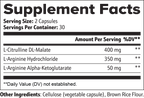 Ingredients: L-Arginine Alpha-Ketoglutarate, L-Arginine Hydrochloride, L-Citrulline DL-Malate, Cellulose (vegetable capsule), Brown Rice Flour.